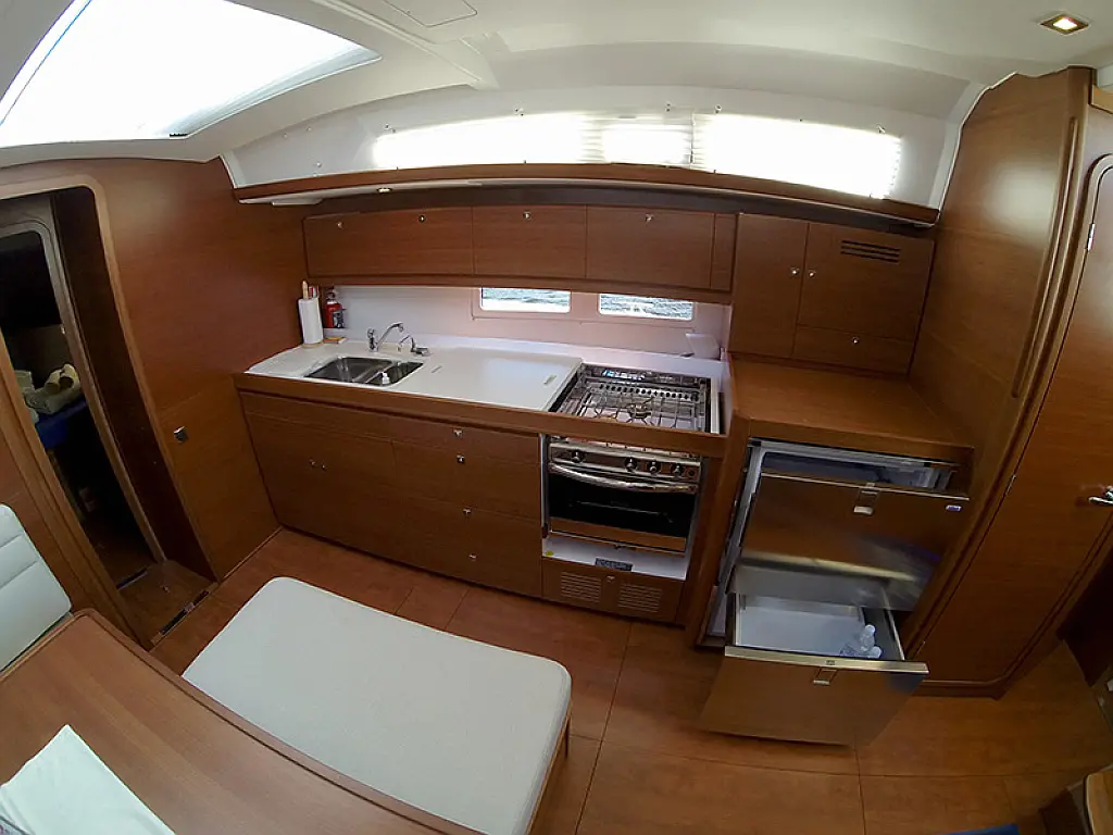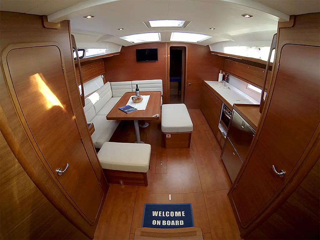 Great Dufour model, fully equipped, with 4 double cabins and 4 toilets, heating, a large cockpit with a bathing platform, and also with a fridge, grill, and sink in the cockpit. Taller mast with full batten main sail, 108% genoa, Full comfort, and high performance.