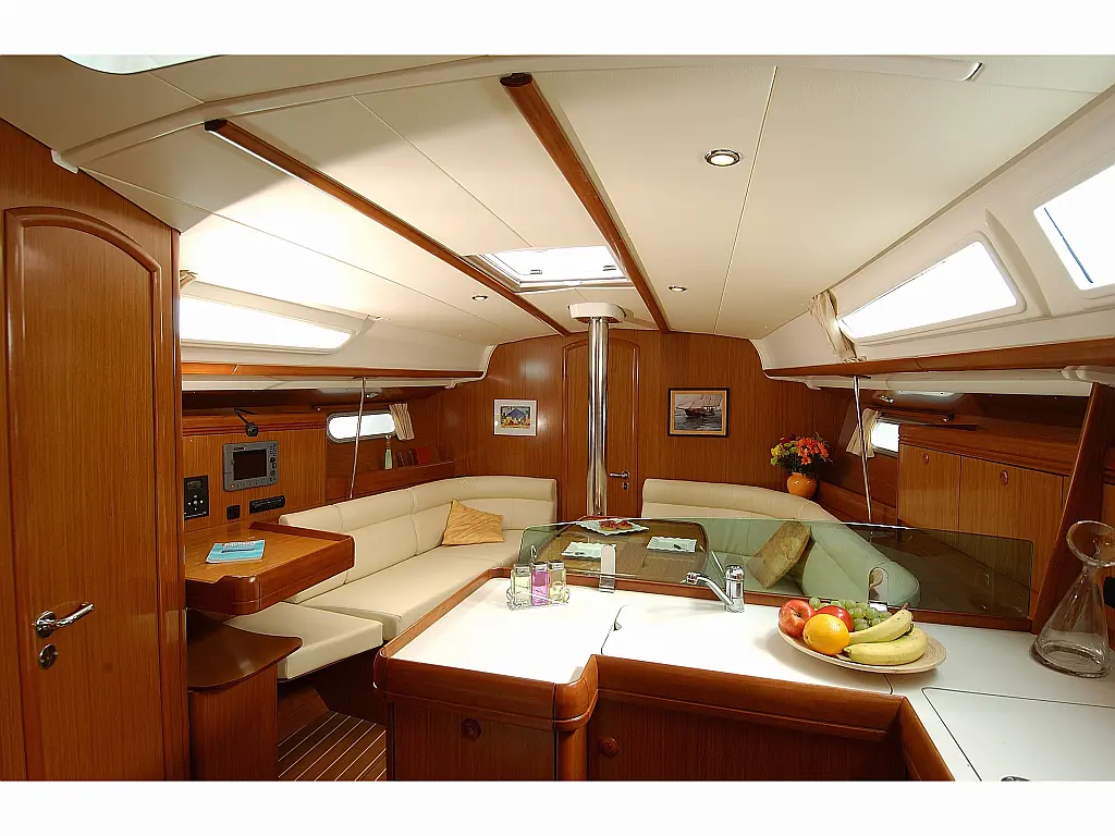 INCLUDED VAT (21%). Full insurance. Safety material for zone 2. Mooring in port base and use port services. Dinghy. Gas. EXCLUDED Fuel, food and beverage, mooring in diferents ports to base. Final cleaning 90.-€. Deposit 2000€ (credit card/deposit) EXTRAS Bed linen 60.-€/booking. Skipper, 165€/day, more maintenance. Outboard engine 100.-€. Spinnaker 100.-€. Paddle surf 100.-€ PAYEMENT 50% at reservation and 50% before boarding SAILBOATS EQUIPMENT Electronic cartography (Plotter) and paper, autopilot, radio VHF, GPS, speedometre, depth sounder, wind, EPIRB and life raft, radio FM/AM with CD interior/exterior, kitchen with oven, dinner set, frigde, hot water, cockpit shower, anchor windlass, sprayhood, bimini, dinghy, pillows, blankets, snorkel equipment.